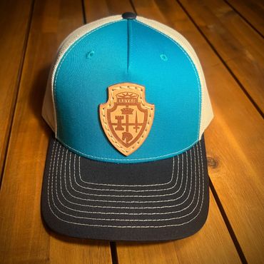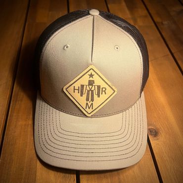 Albert Einstein riding bicycle in Hope Ranch leather patch trucker hat